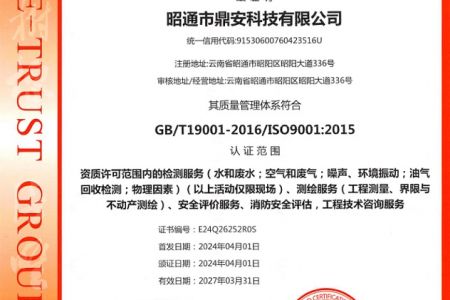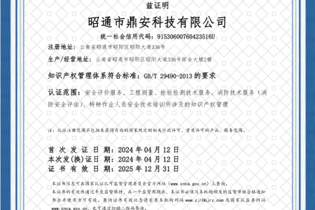 2003年11月10日,昭通市鼎安科技有限公司成立,初始主要從事第三方安全工程技術(shù)服務(wù),經(jīng)多年運(yùn)營,發(fā)展為多專業(yè)綜合科技平臺(tái),為社會(huì)提供多種專業(yè)技術(shù)服務(wù)工作。 現(xiàn)公司注冊(cè)資金為1200萬元,公司法定代表人:毛衛(wèi)旭。公司主要業(yè)務(wù):安全評(píng)價(jià)、安全標(biāo)準(zhǔn)化評(píng)審、安全工程技術(shù)服務(wù);環(huán)境監(jiān)測(cè)、職業(yè)衛(wèi)生檢測(cè)、檢驗(yàn);法律訴訟及非訴訟服務(wù);司法鑒定、固定資產(chǎn)投資項(xiàng)目節(jié)能服務(wù);工程咨詢;工程測(cè)量測(cè)繪;安全教育培訓(xùn)等。是安全生產(chǎn)服務(wù)、安全教育培訓(xùn)機(jī)構(gòu),也是環(huán)境監(jiān)測(cè)和職業(yè)衛(wèi)生服務(wù)機(jī)構(gòu),同時(shí)也是綜合的檢測(cè)檢驗(yàn)、綜合科技平臺(tái)服務(wù)機(jī)構(gòu)。多年來為公、檢、法、司、軍、警、海關(guān)、仲裁、安監(jiān)、工礦商貿(mào)企業(yè)、社會(huì)團(tuán)體及個(gè)人提供多專業(yè)技術(shù)服務(wù)。